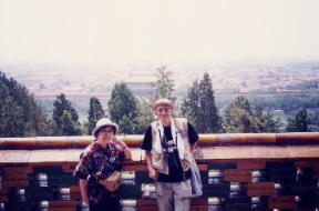 夏景色故宮を背負い妻と立つ(14日北京)